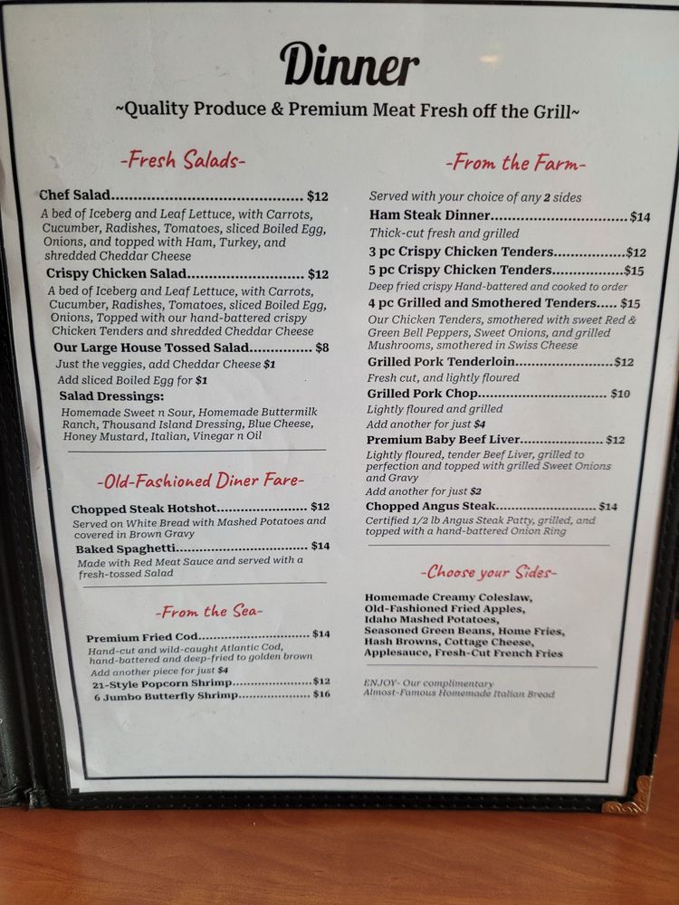 Located in Enon, Ohio, Carriage Inn Restaurant is a family-friendly diner known for its delicious breakfast and brunch offerings. The menu boasts a large selection of home-cooked meals, including favorites like prime rib, hamburgers, and lasagna. Customers rave about the generous portions and great prices, with highlights being the pancakes, biscuits and gravy, and liver and onions. The laid-back atmosphere and friendly staff create a welcoming dining experience, perfect for families or a casual meal out. With many vegetarian options available, Carriage Inn Restaurant caters to a variety of dietary preferences. Whether you're craving a classic American meal or looking to try something new, this diner is a must-visit spot for comforting, home-cooked dishes.